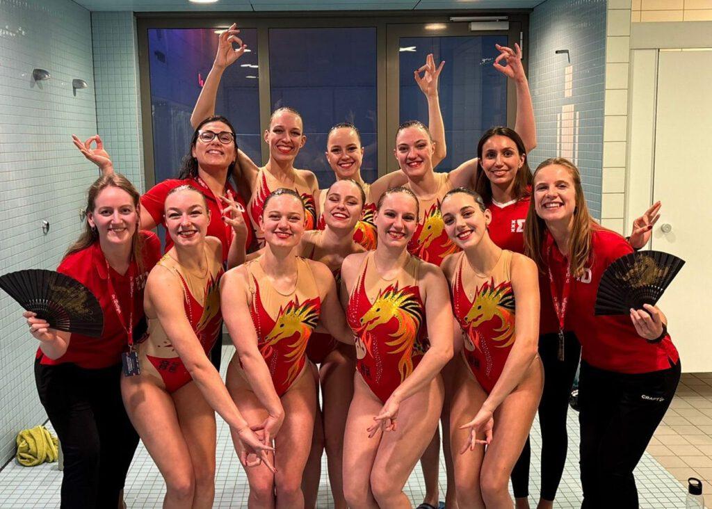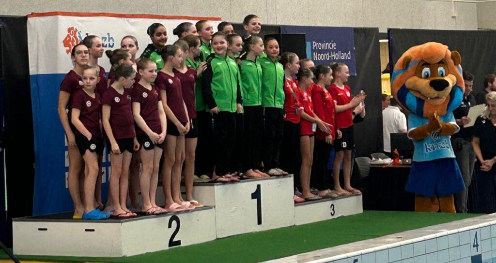 Na opnieuw inzwemmen, nu voor de senioren, is het tijd voor het NK Acrobatische Uitvoering (Acro’s). In een sterk deelnemersveld meet het team van De Dolfijn zich voor het eerst met 11 andere ploegen. Als regerend Nederlands Kampioen Vrije Combinatie, een onderdeel dat niet meer op de kalender staat en is vervangen door deze Acro’s, is de wens en ambitie natuurlijk om op het podium te eindigen.