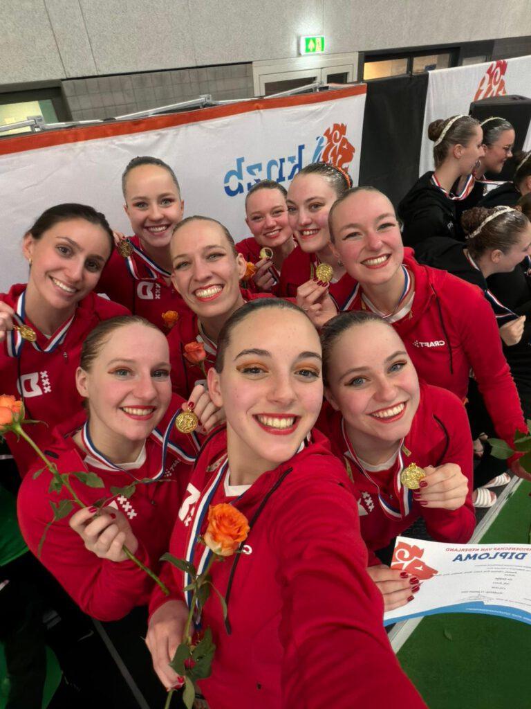 Het is nog zes uitvoeringen wachten, maar de ploeg is niet meer te verslaan en na de laatste te zijn met de titel Nederlands Kampioen Vrije Combinatie, zijn ze nu de eerste met de titel Nederlands Kampioen Acrobatische Uitvoering! Van harte gefeliciteerd meiden!